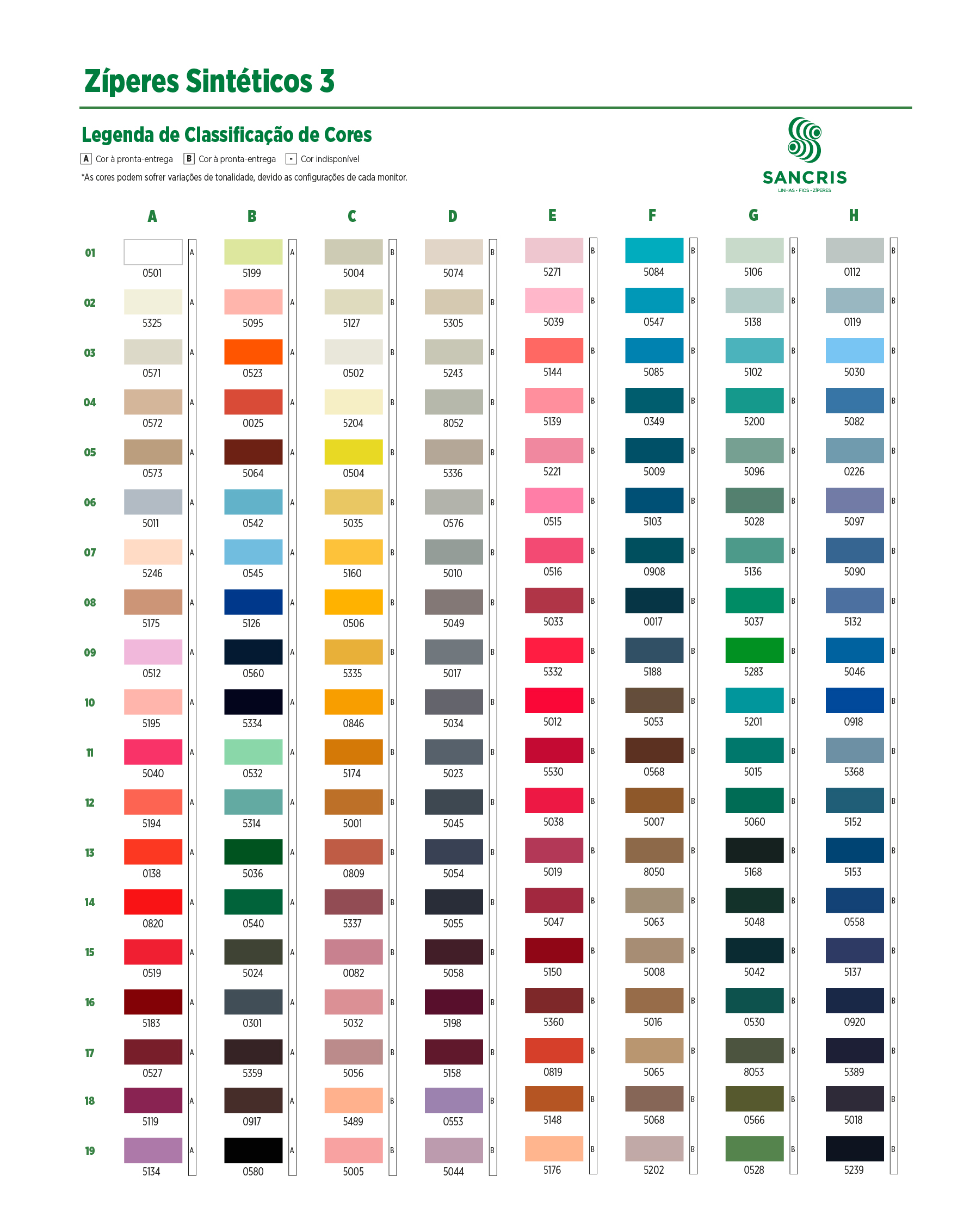 Confira aqui a cartela de cores digitalizada de Zíperes Sintéticos Invertidos 3.